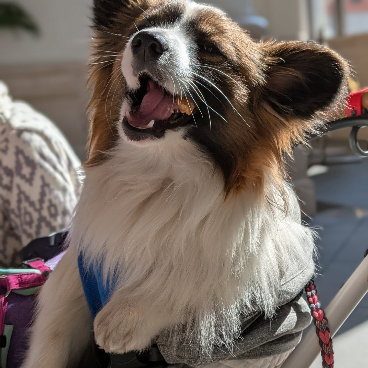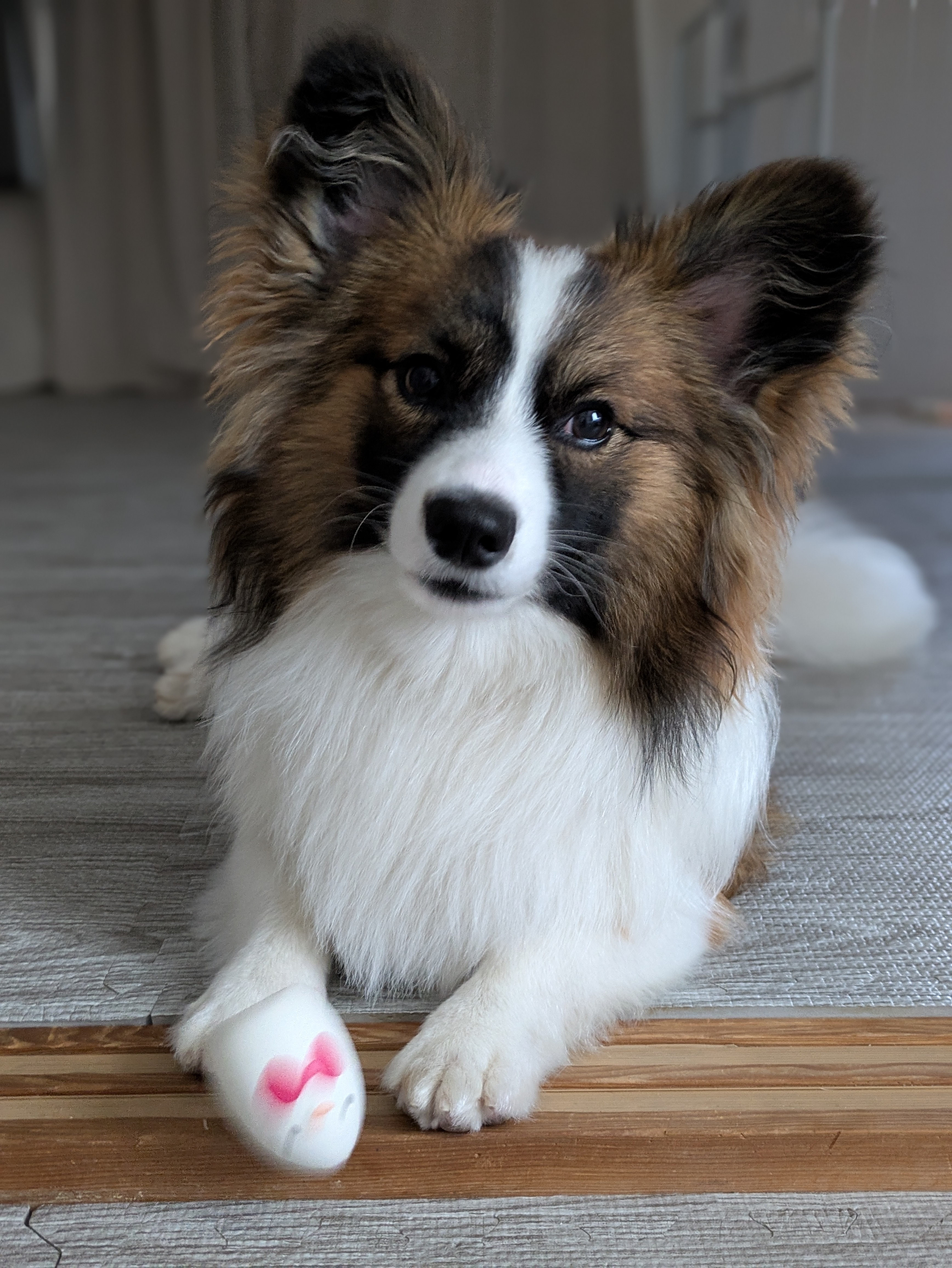 コーギーとパピヨンのmixで、顔はパピヨン、体はコーギー。